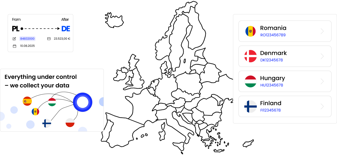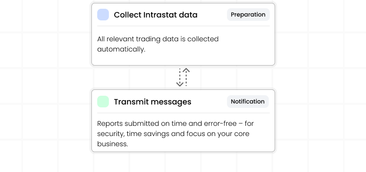 With our solution, your trade data is transferred directly to the Intrastat declaration—quickly, accurately, and in compliance with legal requirements. This helps you avoid fines, save time, and focus on your core business.